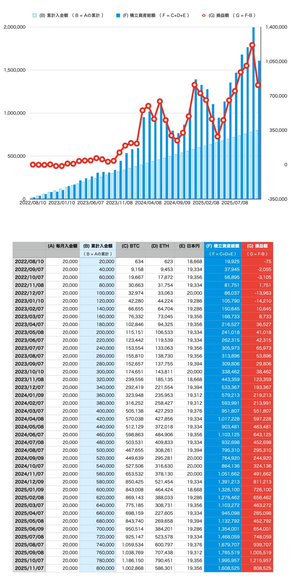 ビットコイン1万円とイーサリアム1万円の合計2万円を毎月購入。